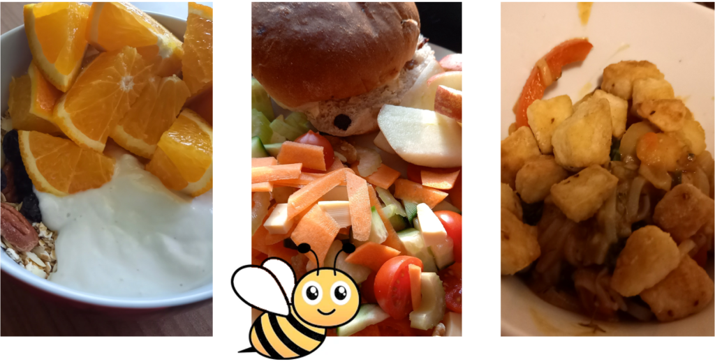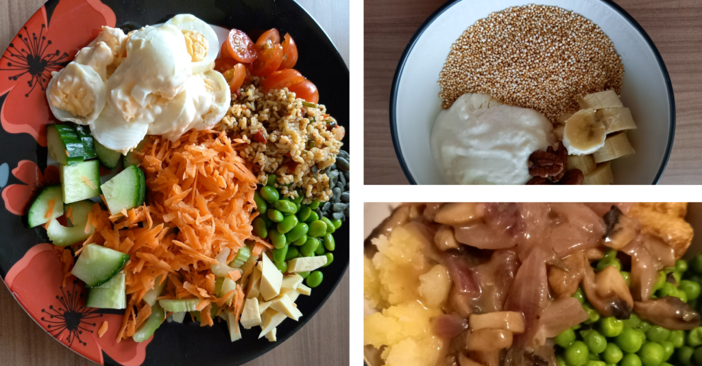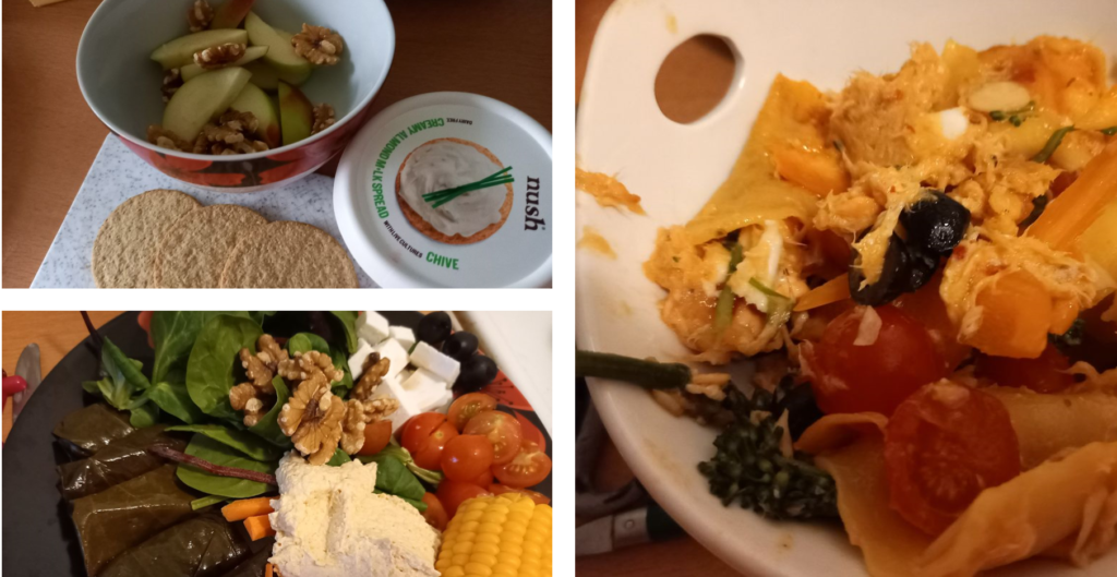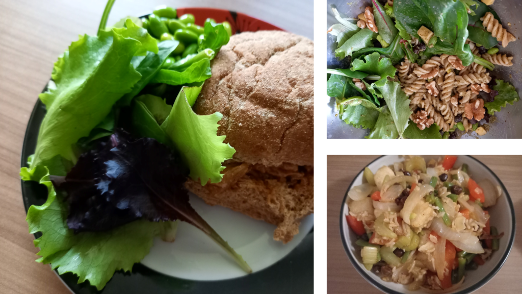 Bottom right: tofu and bean stir fry – I overestimated how much the brown rice would expand once I cooked it