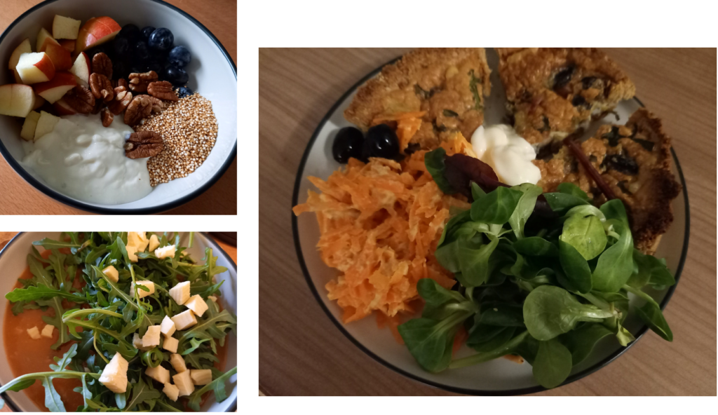 Bottom left: the last of the quiche I made yesterday, half a red pepper