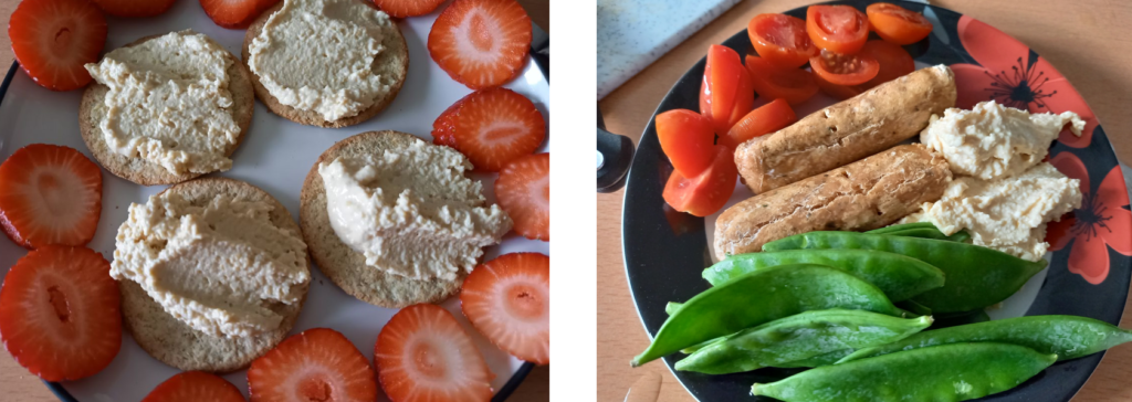 Bottom left: I finally made, and did not burn, the split peas to make into split pea soup – there’s carrots, onion, garlic, and a potato in it too. I was going to make garlic bread (to see if bread is nicer toasted!) but it ended up being bruschetta