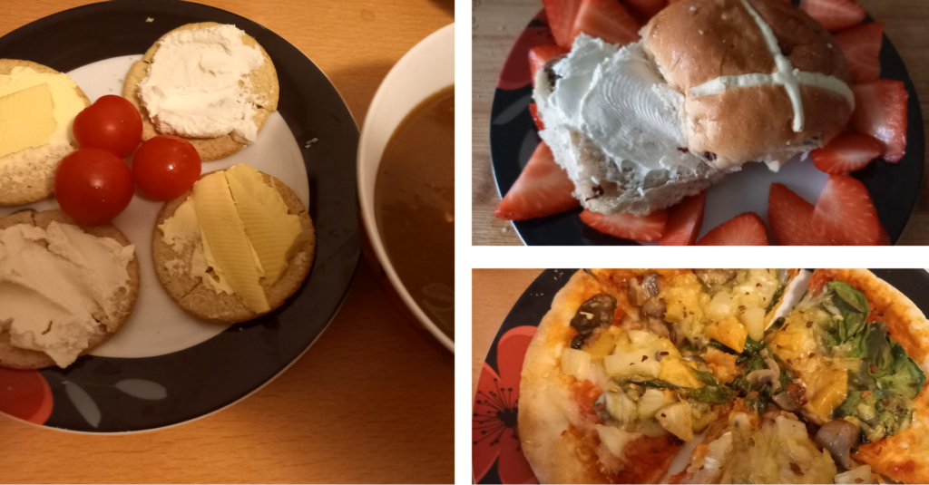 I had another break from blogging, this time semi-unintentional. Just busy. Took my food photos for the past few days, but I think I’ll start posting them just from today. I honestly expected keeping up healthily eating and exercising to be harder, and keeping remembering to blog to be easier, but it’s been the other way round. It’s lunchtime on a Sunday and I’m off out on a healthy walk. Catch you later!